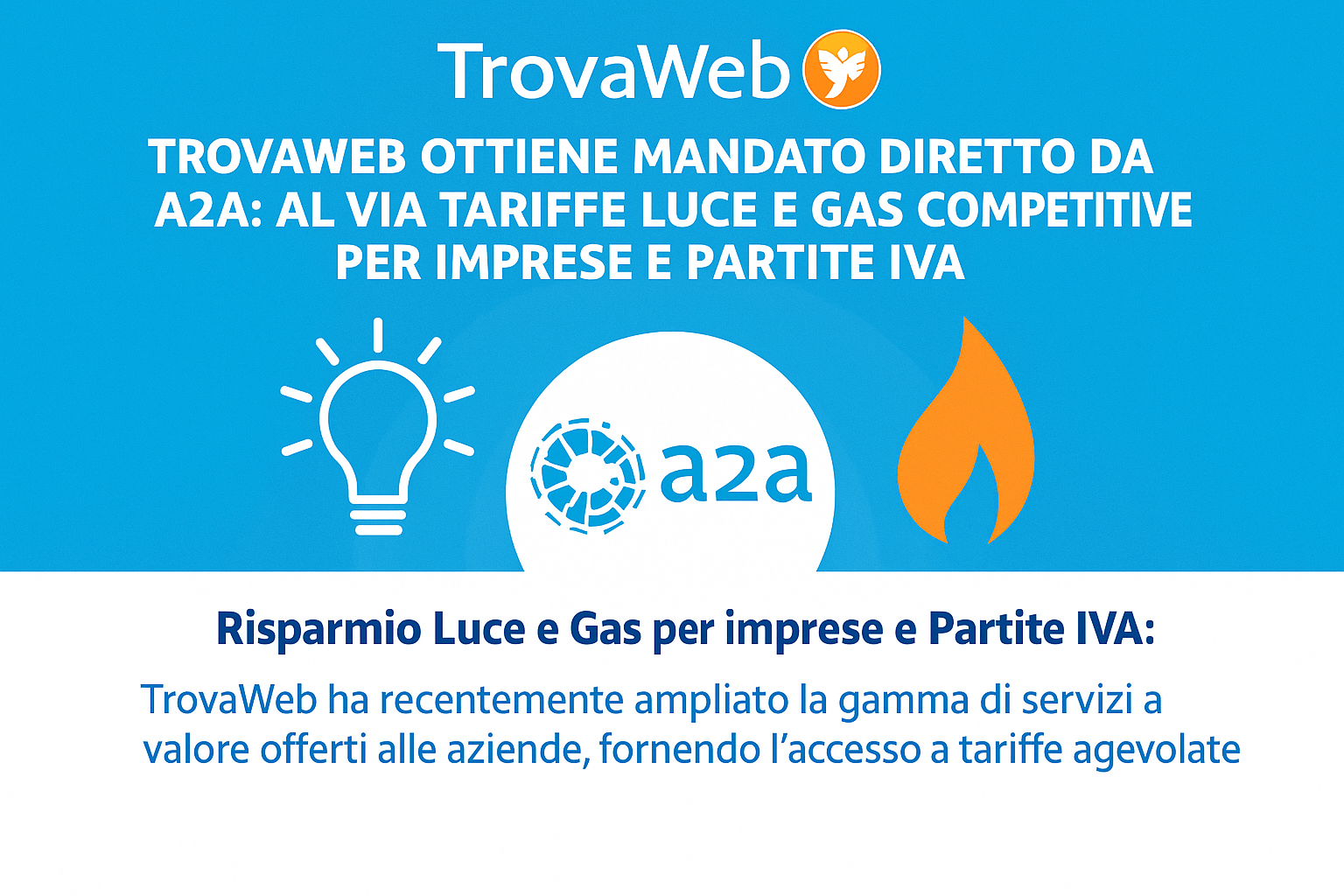 TrovaWeb Srl, azienda Leader nel panorama italiano della Comunicazione Digitale e specializzata nella creazione di Siti Web professionali (istituzionali ed e-commerce), annuncia con entusiasmo una nuova e importante tappa del proprio percorso evolutivo: l’ottenimento del mandato diretto da A2A, uno dei principali player nazionali nel mercato libero dell’energia elettrica e del gas.